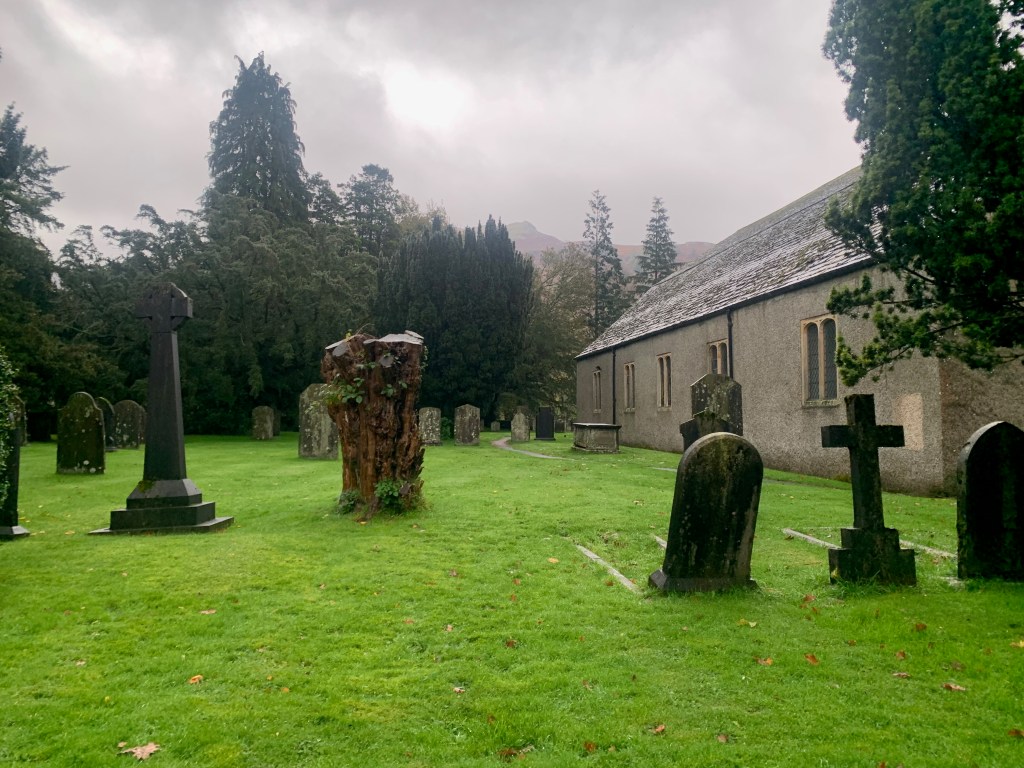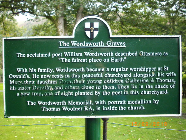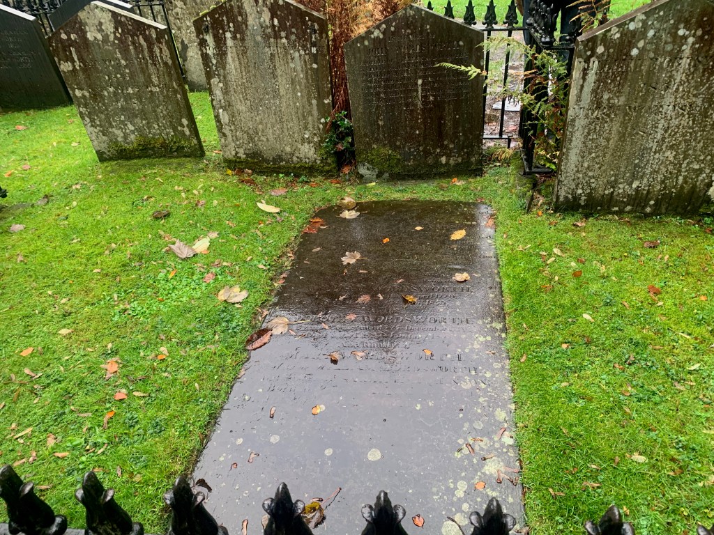 Grasmere is a village in Cumbria, England, in the center of the Lake District, named after its adjacent lake. It has links with the Lake Poets: William and Dorothy Wordsworth lived in Grasmere for 14 years and called it “the loveliest spot that man hath ever found.” William Wordsworth’s and his family’s graves are located in the Grasmere Parish Church graveyard. (Wikipedia)