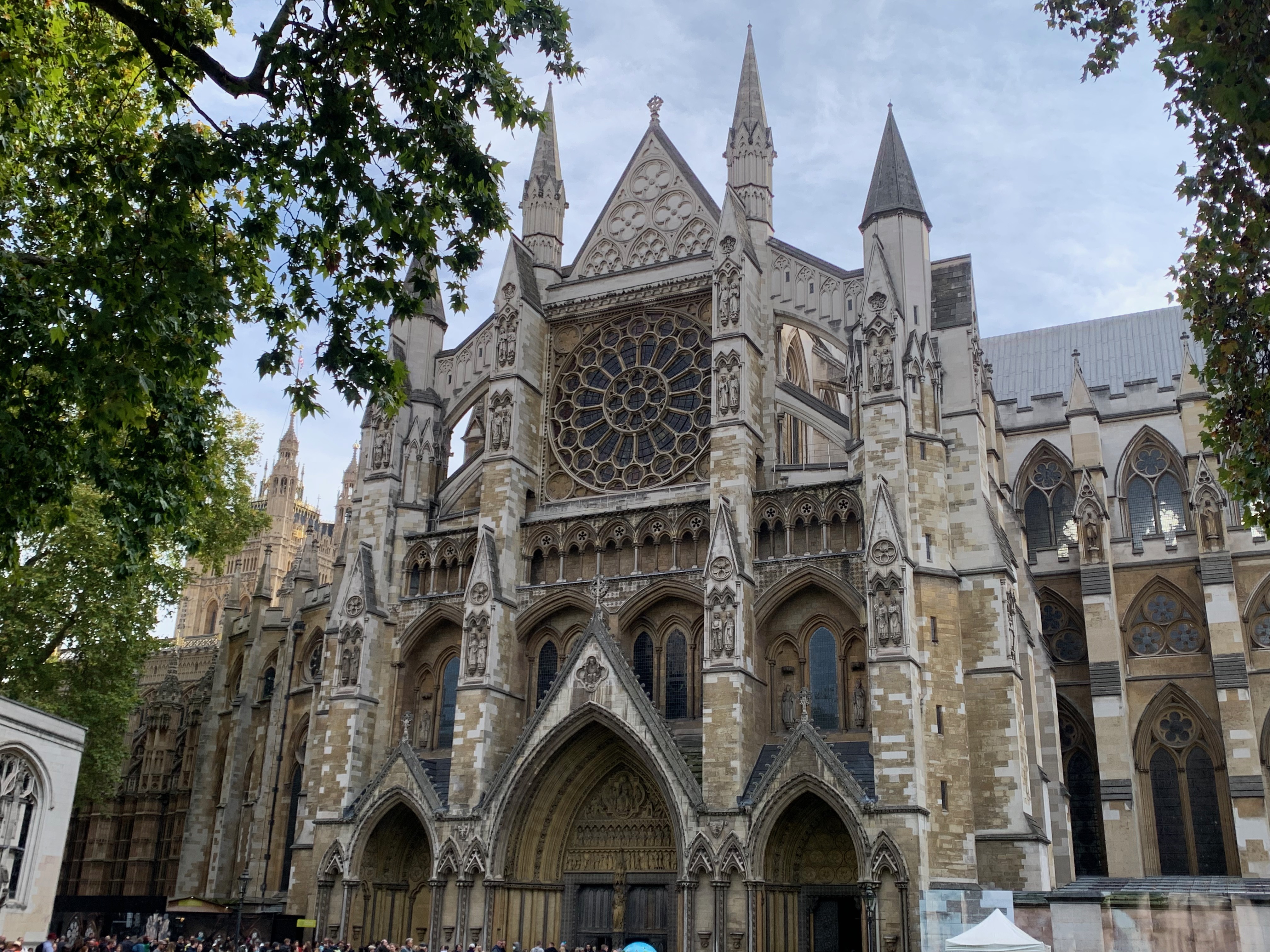 Westminster Abbey, formally titled the Collegiate Church of Saint Peter at Westminster, is a large, mainly Gothic abbey church in the City of Westminster, London, England, just to the west of the Palace of Westminster. It is one of the United Kingdom’s most notable religious buildings and a burial site for English and, later, British monarchs. Since the coronation of William the Conqueror in 1066, all coronations of English and British monarchs have occurred in Westminster Abbey.[5][6] Sixteen royal weddings have occurred at the abbey since 1100.[7] (Wikipedia)